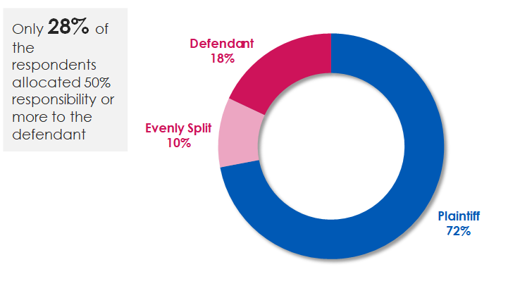 72% of participants found the plaintiff more than 50% at fault, with fault allocations ranging up to 100%