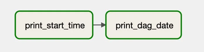 The code snippet above defines the first task, print_start_time, which creates the variable that stores the task instance.