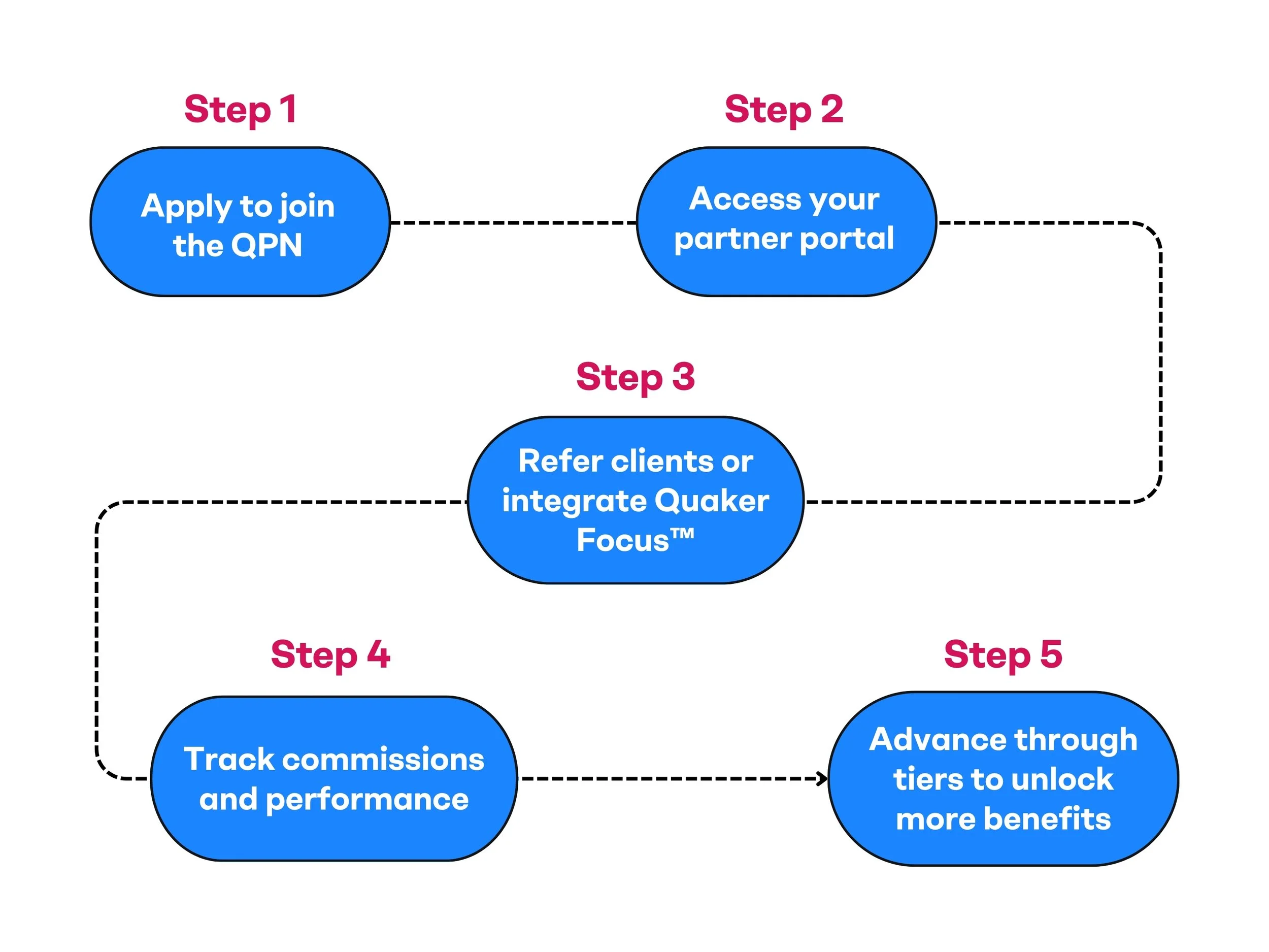 Choose your partnership model: earn commissions on referrals or integrate Quaker Focus™ directly into your own service line.