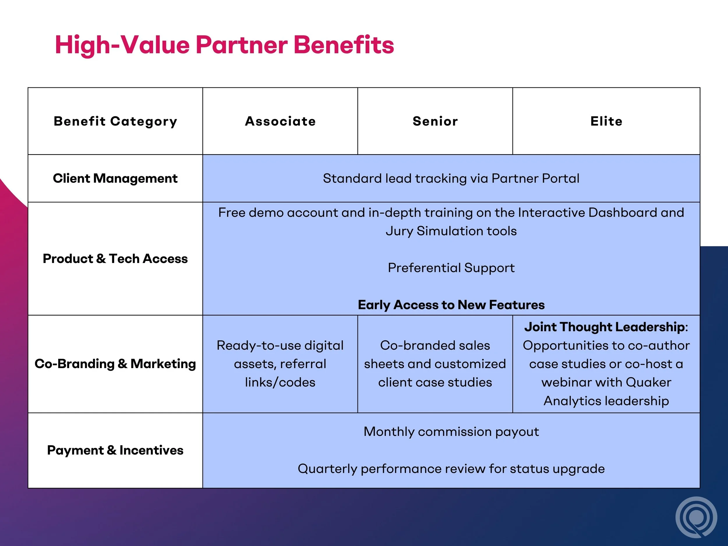 The Quaker Partner Network (QPN) is designed for trial consultants who want to enhance their client offerings with Quaker Focus™ — a technologically advanced, data-rich focus group and jury simulation solution.